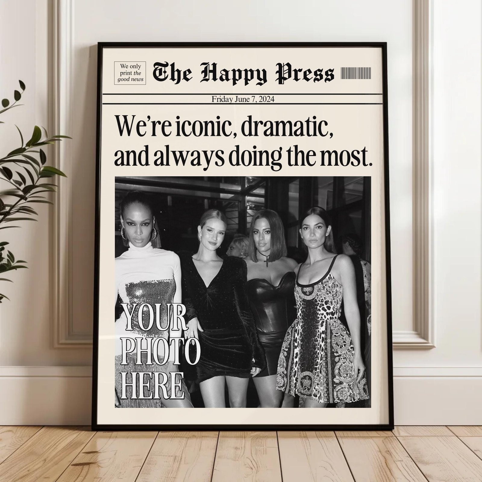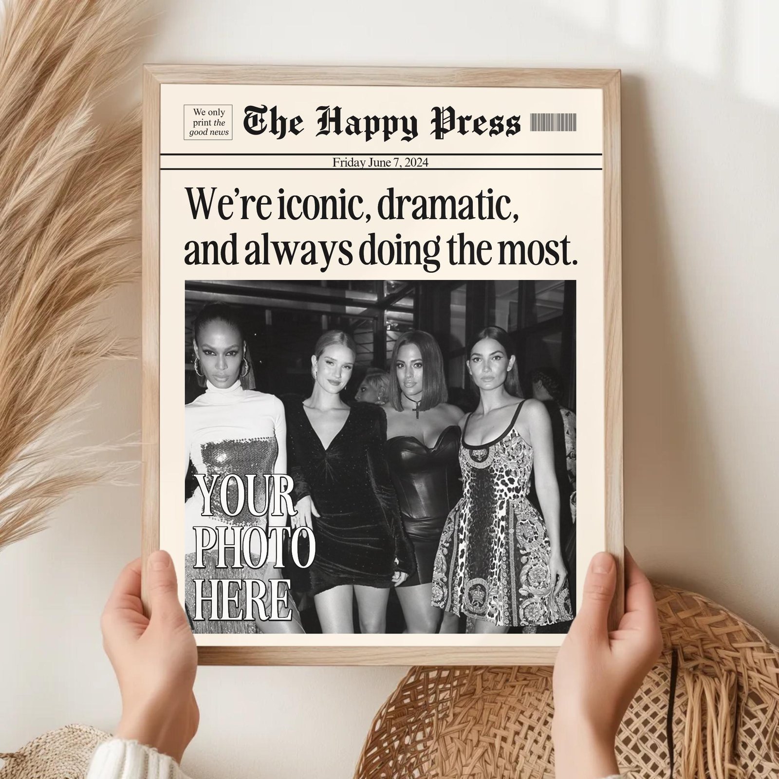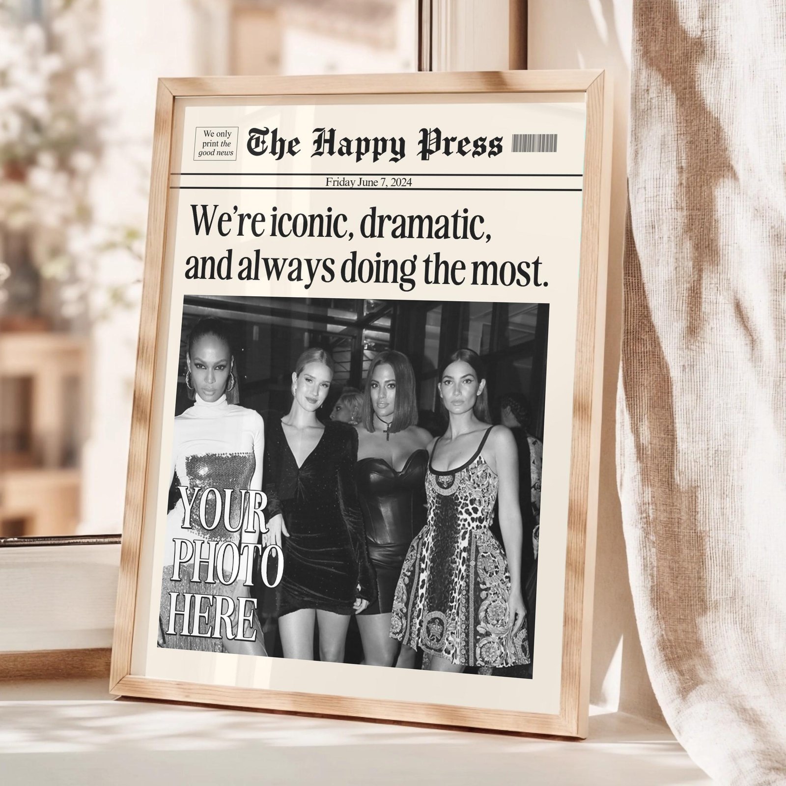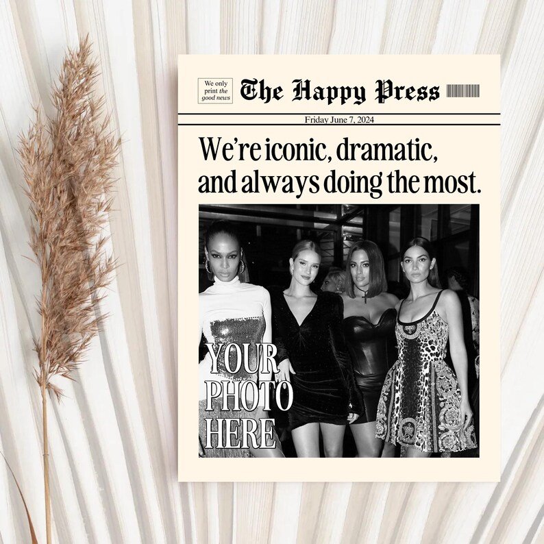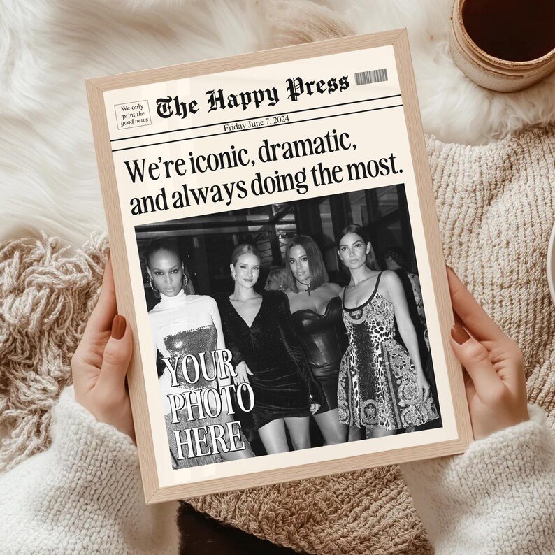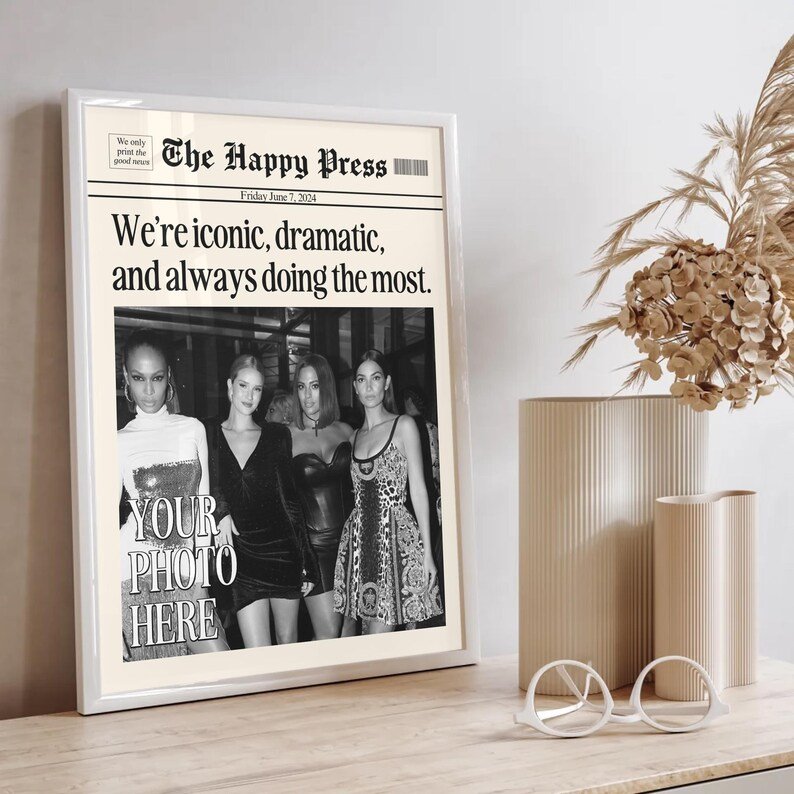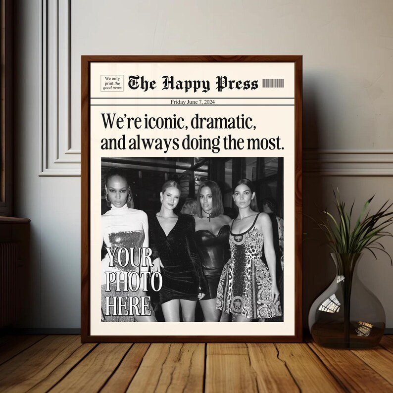 Make your memories timeless with this vintage-inspired custom newspaper print! Whether it’s for your dorm, living room, or as a heartfelt gift, this print will elevate any space with a unique personal touch. Upload your favorite photo, choose your headline, and let me create a piece that feels straight out of a classic newspaper!