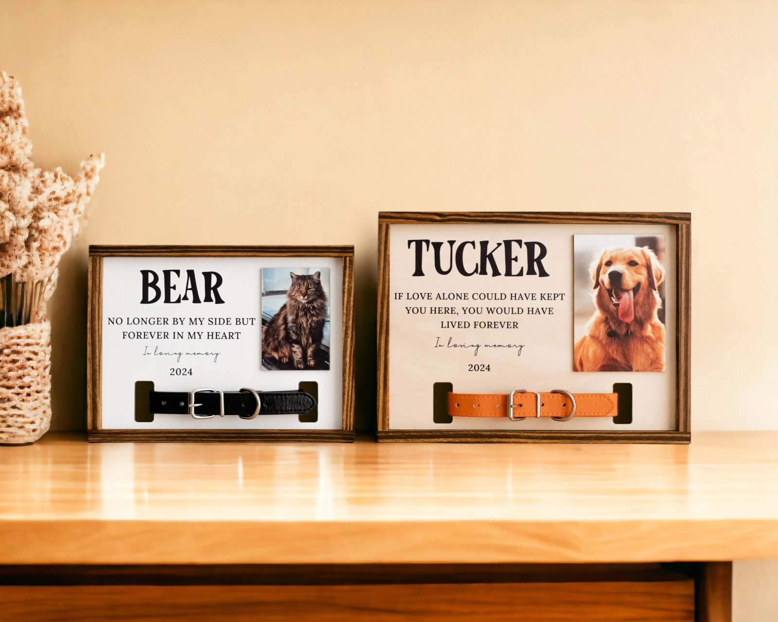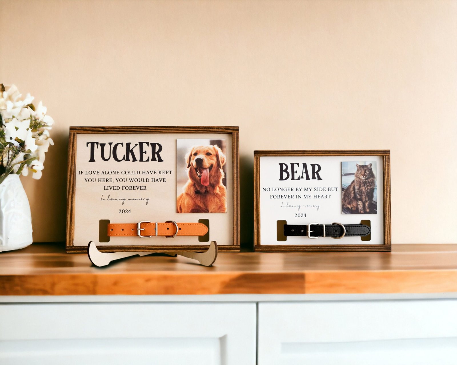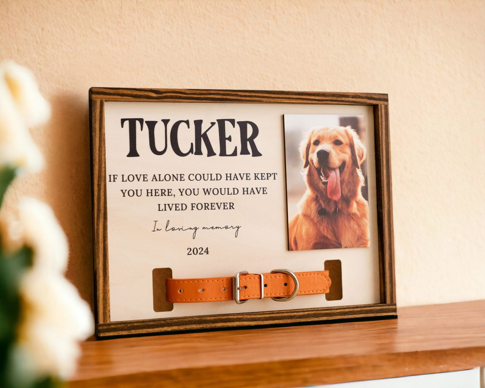 “I cried when I opened it. Seeing my Max’s collar and photo displayed like this brings me comfort every day. It’s beautiful and heartfelt.” – Emily R.