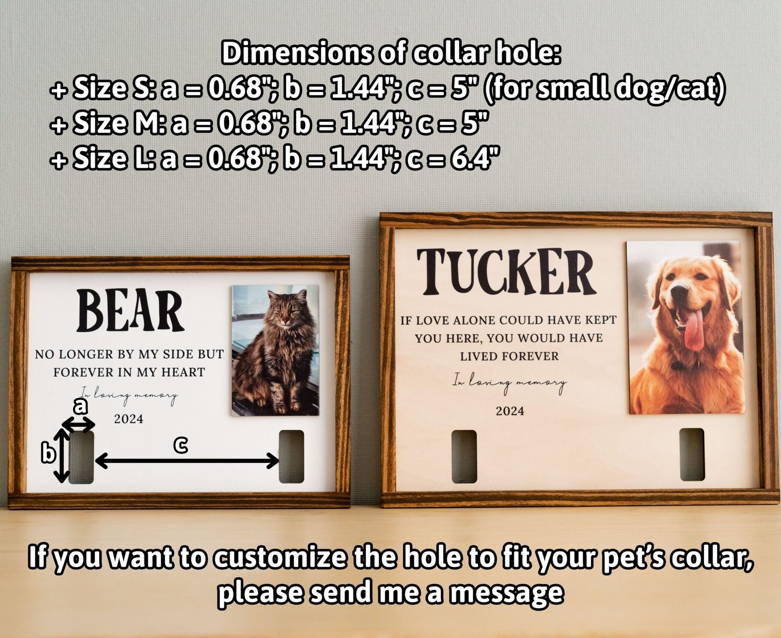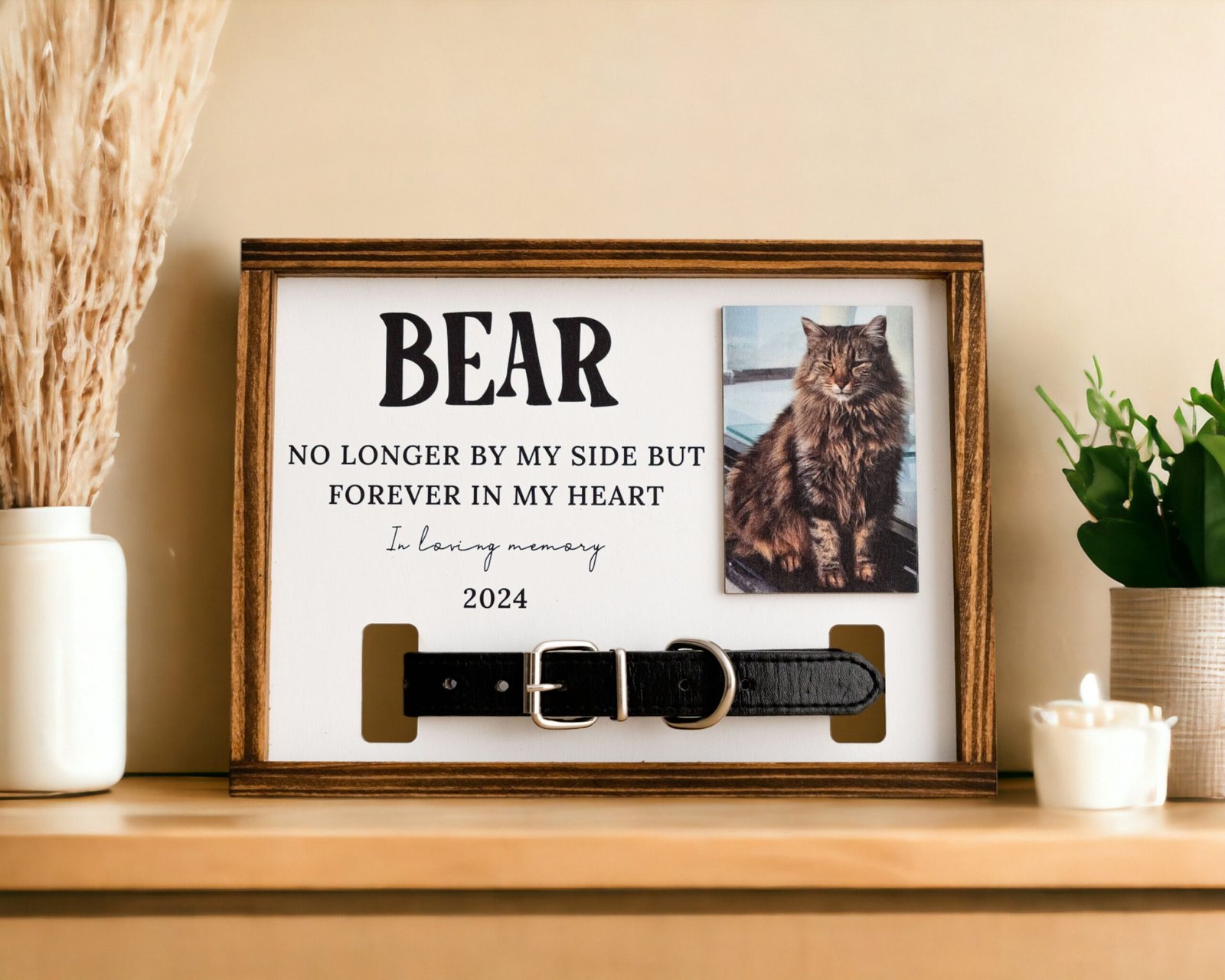 • 🐕 Personalized Collar Display Frame Specially designed to hold your pet’s collar securely, turning a simple keepsake into a timeless tribute that can be displayed with pride and love.